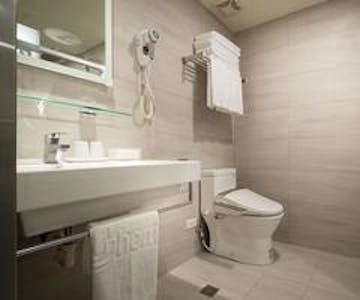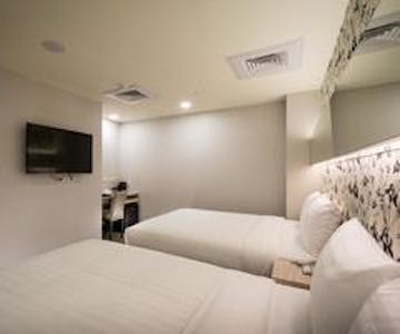 The quad room features an exquisite and minimalist set up designed to help wash your fatigue away. The room is equipped with two large beds, walk-in shower and